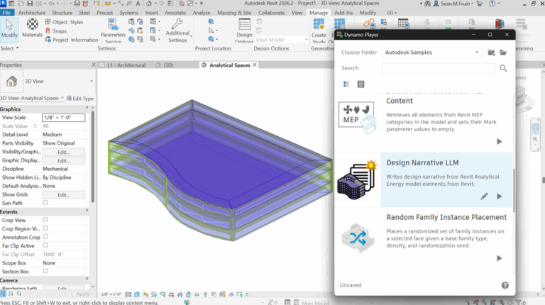 А вот идея для автоматизации задачи создания описательной части для концептуальной стадии на основе энергетической модели с помощью Dynamo и AI: «Turning Energy Models into Design Narratives with Agentic Nodes in Dynamo». Нажми на кнопку — получи аналог пояснительной записки для эскизного проекта. На входе — просто концептуальная форма в Revit!