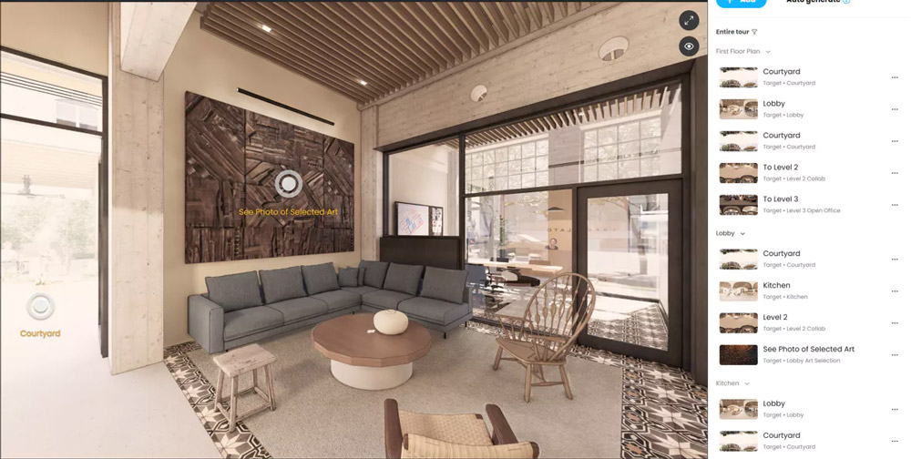 Дэн Стайн рассказал, как используют панорамы из Enscape в Lake | Flato: «Enscape panoramas meet Chaos Cloud: Virtual tours, collaboration, and VR at Lake Flato». Суть обновлённого метода в использовании Chaos Cloud, благодаря ему можно создавать виртуальный тур по объекту.