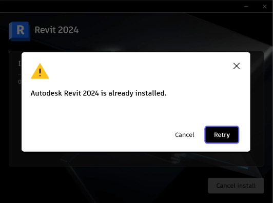- ошибка «Autodesk Revit 20xx уже установлен»;