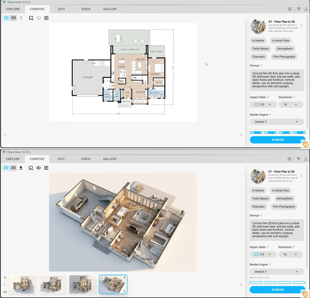 Простые 2D-планы превращаются в 3D-планы одним простым промптом, модель насыщается антуражем, визуализации становятся гораздо более контролируемыми. И всё это в привычном инструменте.